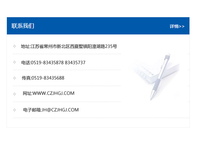 傳真:0519-83435688    郵編:213135    網址:WWW.czjhgj_com.hmgm66.com    電子郵箱:JH@czjhgj_com.hmgm66.com